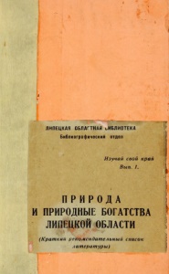 ♦ 4 ' I * ЛИПЕЦКАЯ ОБЛАГТНАЯ ьИБЛИОТЕКА Библиографический отдел Изучай свой край Вып. 1. I П Р И Р О Д А И ПРИРОДНЫЕ БОГАТСТВА ЛИПЕЦКОЙ ОБЛАСТИ (Краткий рекомендательный список литературы)