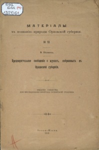 Предварительное сообщение о жуках, собранных в Орловской губернии. В.Беляев