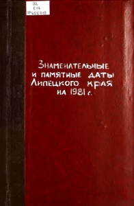 Календарь знаменательных и памятных дат Липецкой области. 1981 год.