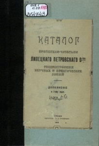 Каталог библиотеки-читальни Липецкого Петровского Общества.Дополнение к I-му выпуску.