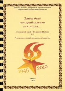 Липецкая областная универсальная научная библиотека Информационно-библиографический отдел Этот день мы приближали как могли,,. Липецкий край - Великой Победе Ч .2 Рекомендательный указатель литературы Липецк 2010
