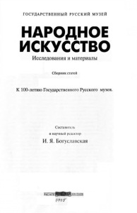 ГОСУДАРСТВЕННЫЙ РУССКИЙ МУЗЕЙ НАРОДНОЕ ИСКУССТВО Исследования и материалы Сборник статей К 100-летию Государственного Русского музея. Составитель и научный редактор И. Я. Богуславская