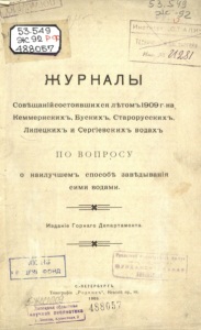 Журналы совещаний, состоявшихся летом 1909 г. на Кеммернских, Буских, Старорусских, Липецких и Сергиевских водах.
