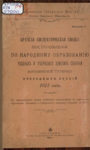 Краткая систематическая сводка постановлений по народному образованию Уездных и Губернского земских собраний Воронежской губернии