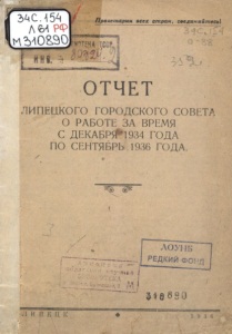 Отчет Липецкого городского совета о работе за время с декабря 1934 года по сентябрь 1936 года.