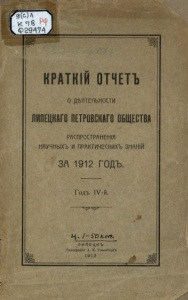 Краткий отчет о деятельности Липецкого Петровского Общества за 1912 год.