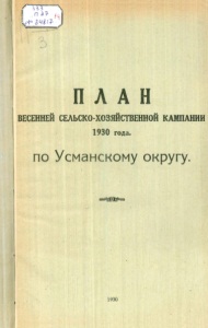 План весенней сельско-хозйственной кампании 1930 года.По Усманскому округу.