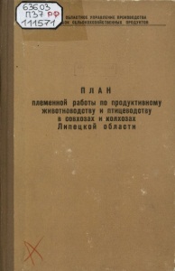 ОБЛАСТНОЕ УП Р АВЛ ЕН И Е ПРОИЗВОДСТВА ОК СЕЛЬСКОХОЗЯЙСТВЕННЫХ ПРОДУКТОВ П Л А Н племенной работы по продуктивному животноводству и птицеводству в совхозах и колхозах Л и п е ц к о й о б л а с т и