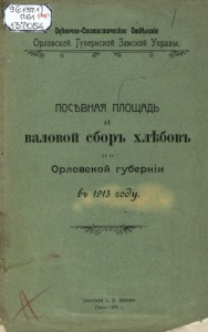 Посевная площадь и валовой сбор хлебов по Орловской губернии в 1913 году.
