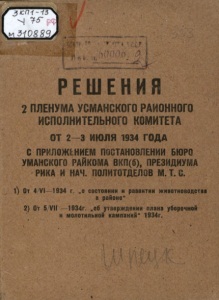 Решения 2 Пленума Усманского Райисполкома от 2-3 июля 1934 г.