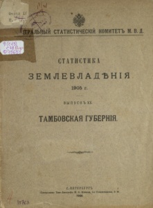 Статистика землевладения.1905г.Выпуск XX.Тамбовская губерния.