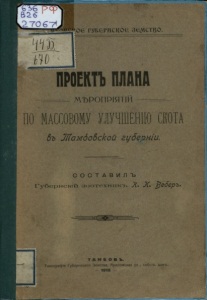 Проект плана мероприятий по массовому улучшению скота в Тамбовской губернии. К.К.Вебер