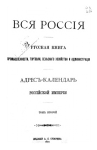 ВСЯ РОССІЯ .. ' Р у с с к а я к н и г а ПРОМЫШЛЕНОСТИ, ТОРГОВЛИ, СЕЛЬСКАГОХОЗЯЙСТВАИАДМИНИСТРАЦІИ АДРЕСЪ-КАЛЕНДАРЬ ТОМЪ ВТОРОЙ аЗДАШЕ А. О. СУВОРИНА РОССІЙСКОЙ ИМПЕРІИ