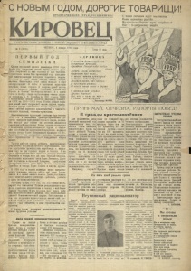 ч С НОВЫМ ГОДОМ, ДОРОГИЕ ТОВАРИЩИ! ПРОЛЕТАРИИ ВСЕХ СТРАН, СРЕДНИЙЙТЕОЬ С нами сегодня идут миллионы, Наше единство растёт. Мудростью Партии путь озарённый ^ а с к Коммунизму ведёН ГАЗЕТА ПАРТКОМА, ДИРЕКЦИИ И ЗАВКОМА ЛИПЕЦКОГО ТРАКТОРНОГОШВОДА № 1 (2003) ЧЕТВЕРГ, 1 явваря 1959 года Год издания 16-й Цена 10 коп. П Е Р В Ы Й Г О Д С Е М И Л Е Т К И ■; Сорван последний листок календаря 1958 года Мирул год, принесший нашей стране столько радо -КЙНХ свершений во имя человека и для человека Удивительно ёмким был прошедший год, наполнен ный замечательными победами советского народа. Вступали в строй новые заводы, шахты, домны, мартены. Зажигались огни самых мощных в мире электростанций. В тайге й пустынях вырастали кварталы новых городов. В закрома рекой лилось зерно небывалого урожая. Советский человек всё больше и больше завоёвывал космос. А в конце года—в ноябре—были опубликованы тезисы докла да товарища Н. С. Хрущёва на XXI съезде КПСС о контрольных цифрах развития народного ховяйст- ва СССР на 1959— 1965 годы. В этих цифрах выра жен новый взлёт творческой мысли партии, народа. Каждая строка семилетнего плана пронизана ве ликой заботой партии и правительства о благе со ветского человека, человека-труженяка. Замечательными трудовыми успехами был отмечен 1958 год и липецкими тракторостроителями. До срочно завершив выполнение годового плана, коллек тив завода дал стране на десятки миллионов сверхплановой продукции. Новые успехи достигнуты в повышении производительности труда, в сниже нии себестоимости выпускаемой продукции, налажен выпуск новых, более совершенных тракторов «Т-38». . постригли методом коллектив ного строительства 11 тысяч квадратных м’бтров жилья. Тысячи рабочих завода добились замечательных результатов в социалистическом соревновании. Мно гие передовики производства выработали в минув шем году по три годовых нормы и больше. В их - числе фрезеровщик цеха пусковых моторов Николай Филиппов и токарь того же цеха Николай Фёдоров, модельщики модельного цеха Борис Литвинов, Дмит рий Подтынкин и Анатолий Дмитриев, шлифовщики инструментального цеха Пётр Лысак, Александр Трегубов и токарь Борис Ходаев и многие другие. В 1958 году в стране возникло новое патриоти ческое движение, которое сейчас всё шире разви вается и в цехах нашего завода. Девиз участников этого замечательного движения—работать, учиться и жить по-коммунистически. Наступил новый, 1959 год, год XXI съезда КПСС, первый год семилетки. Полные революционного па фоса, советские люди готовы к скачку в ещё более светлое будущее. В это будущее наш народ идёт под знаменем великого Ленина, под водительством славной Коммунистической партии. Нет сомнения в том, что коллектив нашего завода внесёт свой дое- _И |ный вклад в дело успешного выполнения плана первого гбдПгемилеткн, в дело строительства ком мунизма. С Новым годом, товарищи тракторостроители! К новым трудовым успехам! Дела первой коммунистической Щ'Гг-г Первая на заводе бригада коммунистиче ского труда в составе кузнеца Виталия Улупо- ва (бригадир), прессов щика Анатолия Панюш кина и нагревальщика Валентина Ногорелова работает в кузнечном це хе уверенно. Своё обяза тельство — выполнять производственные нормы не ниже чем ва 150 про центов — бригада пере крывает. Средняя выра ботка в течение декабря в бригаде составила свыше 170 проценто