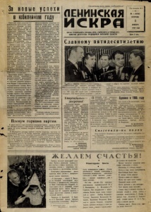 За н о в ы е у с п е х и в юбилейном году С о ве тс ки е лю д и радо с тн о о т п р а зд н о в а л и н а с ту п ле н и е ново г о г о д а и с х о р ош им нас трое нием п р и с т у п и л и к раб о те во в тором г о д у п я т и л е т к и . И х во о д уш е в л яю т сердечные сло ва н о в о г о д н е г о п о зд р а в ле н и я , с к о то р ы м о б р а ти ли с ь к н а р о д у Ц е н т р а ль ны й К о м и т е т К П С С , П р е зи д и ум В е р х о в н о г о Совета С С С Р и Совет М и н и с т р о в СС С Р . « Н а с т у п а ю щ и й год , — г о в о р и т с я в э том п о зд р а в ле н и и , — в х о д и т в н аш дом , в б оль ш у ю и д р у ж н у ю семью сове т с к и х н а р о д о в к а к г о д необы ч ны й , особенны й . Э то б уд е т г о д п я ти д е с я ти ле ти я В е ли кой О к т я б р ь с к о й со ц и а ли с ти ч е с ко й ре в о лю ци и . С о в е тс ки й н арод , т р у д ящ и е с я всех с тр а н о тм е т я т сла вны й юби лей р о ж д е н и я пер в о г о в мире со ц и а ли с ти ч е с ко г о ю с у д а р с т в а . Э то б у д е т вели кий п р а з д н и к всем и р н о -и с то р и ч е с к и х побед к о м м у н и зм а , т о р ж е с тв а идей В ла д им и р а И льи ча Л е н и н а — вд о х н о в и т еля и в о ж дя н аш ей ре во лю ци и , о сно ва те - -,.^^К0ММЧИ1КГЛ1МесКо№ 1Г?,ОДШ) и... С о в е т с ко г о г о с уд а р с тв а » . Т р у ж е н и к и н аш е г о г ор о д а и р а й о н а у с п еш н о с п р а в и ли с ь с пр о и зв о д с тв е н н ой пр о г р ам м о й . В к а н у н н о в о г о г о д а к о л л е к т и вы с о в хо зо в досро ч но р а п о р т о вали Родине о вы полн ен ии всех г о с у д а р с т в е н н ы х плано в . П ред п р и я т и я п р омы ш ле н н о с ти , т р а н с п о р т а и с тр о и те ль с тв а еще 18 д е к а б р я за в е рш и ли плановы е з а д а н и я п е р во го г од а п я т и л е т к и . О бъем п р ом ы ш л е н н о г о про и зв о д с тв а по с р а вн е н ию с пре д ы д ущ и м г о д ом во зрос на 5 пр о це н т о в . П р е д п р и я т и ям и вы п ущ е н о с ве р х п ла н о во й п р о д у к ции более чем на 3,5 м иллиона рублей . Д 01 .мгЛ|,и встрет^^гь 50 -летие С о ве тс кой власти , к о л л е к т и в ы пр ом ы ш ле н ны х пред п р и я т и й и со в хо зо в п р и н я ли вы со ки е обя за те ль с тв а , ко то ры е п р е д у см а т р и в аю т досроч ное з а вершение пла на д в у х лет п я т и л е т ки и зн а ч и тельн ое ул у ч ш е ние э к о н о м и ч е с ки х по ка за те ле й . Земледельцы б о рю т с я под д е в и зом : « Г о д у ю б и ле й н ом у — вы с о ки й уровень» . С о р е вн у я с ь за о б р а зц о в ую п о д г о т о в к у к весне, м но ги е с о в х о зы рай о н а у ж е до би ли сь п е р вы х р е зул ь та то в — довели д о в ы с о к и х ко н д и ц и й семена , у с п еш н о р е м о н т и р ую т т р а к т о р ы и се л ь с ко х о з я й с т в е н н ую т е х н и к у , п о вы ш аю т пло до родие по ч вы и с трем я тся боль ше н а к о п и т ь вла г и на полях . Т а к п о с т у п а ю т в с о в х о з а х «В пе ред» , «П р а в д а » , «Россия» . Очень в а ж н о пер ви ч ным п а р ти й ны м о р г а н и з а ц и ям , х о з я й с т венным р у ко в о д и т е л я м со зд а ва ть все у сло в и я д ля пло до т в о р н о г о т р у д а с о р е в н ую щ и х с я , д об и ва ть с я ш и р о ко й г ла с н о с т и сор е вн о ва н и я , его ко н кр е т н о с т и и действенности . В на с тупивш ем г о д у н е ко т о рые пред прия ти я г о р о д а перей д у т на новые методы пла н и р о вани я _ 1 и ,дщ териально г о с т и м у - ___ л/*т и1Л и г п п п и - '■ 'Т П Г р о в Ь и я . П о Л В Д ^ ю исполь зо ва ть преим ущ е с тва п- 5 'ДЬ!х^^с- ловий с ум ею т там , где о р г а н и з у ю т п р о и зво д с тво на с т р о г о н а у ч н о й основе , о т к р о ю т ш и р о к у ю д о р о г у те х н и ч е с ко м у п р о г рессу , б у д у т вн ед р я ть п р и н ц и пы хо зра сч е та , п р 