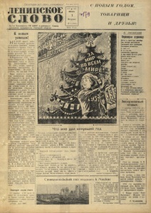 V Пролетарии всех стран, соединяйтесь! Год изд. X X V II ЛЕНИНСКОЕ Орган Х л е в е а с ко го Р К БИСС и р а й о н н о го Совета д е п у т а т о в т р у д я щ и х '* * , Л и п е ц к о й о бл а е т» С П О Л Ы М ГО ДОМ , Т О В А Р И Щ И И Д ! 'Г ■ К новым успехам! Н АД ВСЕЙ нашей люби мой Родиной прозвуча ли куранты Спасской башни Московского Кремли. Ушел в прошлое старый год, годборь-: бы за осуществление истори ческих решении XX съ е зд а ! Коммунистической партии. Куйбышевская ГЭС, газо провод Ставрополь —- Москва, спортивный город в Л у з ,пи ках, быстрокрылая птица ТУ -1 0 4 » , новые тракторы, комбайны, автомашины, ра диоприемники... Да разве ие- речтешь, что дал нам 1956-11! Наши успехи в строитель стве коммунизма велики, и это отражается на росте бла госостояния советских людей. 1956 год был годом закона о пенсиях, сокращения рабочего дня, отмены платы за обуче ние, увеличения отпусков по беременности и родам. 35 мил лиардов рублей— вот выигрыш советских людей от осущест вления этих мероприятий! Замечательны итоги про шедшего года, ио ощо более замечательны перспективы иа будущее, которые открыл де кабрьский Пленум ЦК КПСС. Новый, 1957 год, будет годом улучшения руководства 'э к о номикой и государственным! планированием на основе де-д пинских принципов социали стического хозяйствования. В] новом году будет утвержден тестой пяти летний план. Пар ! т й я призывает при слу ш ивать-! ся к голосу масс, опираться! на опыт масс, поддерживать и поощрять народную инициа тиву. Нас радуют проникну тые’ ленинским духом реше-1 ниа. Мы твердо знаем, что они I будут осуществлены. Труженики колхозов наше го района в прошедшем году добились неплохих показате лей по увеличепиго продуктив ности животноводства. Хорошо потрудились наши механиза торы в ноле и на ремонте. В 1956 году своими делами про славили себя доярки Ф. Г.Не- плюева, Е. Я. Дедова, 11. Р. Пальчикова, Ё. 11. Тамбовце- ва, М. А. Корчагина, М. Р .Ас- ламова и многое, многие дру гие. Наступил новый год, соро ковой год первого к мире со циалистического государства. Пусть этот год будет годом великих свершений, великих дел советского народа. Пусть новый, 1957 год, будет годом мира! А н га р а д ал а свет декабря в 2П часов 37 ! минут по московскому креме-1 ни Первая турбина Иркутской гидроэлектростанции далапро- мышленыьш ток. динара ала свет! М. ЛИСЯНСКИЙ Переверни страницу Под легким дуновеньем Последний лист календаря, Последнее мгновенье... И года ист. И но год мы Становимся взрослее. А под седой брошей зилы Цветы июня зреют. В токую ночь Земля поет Подсяегогым покровам. Деккбрь Уходит старый год Приходит новый. Я вижу: Вот они стоят Торжественно и саято. Мгновенье — И сменил солдат Товарищ», солдата. Мелькнувший год — Минувший год. Он в нашу летопись войдет И в коммунизма сохранится Страницей доблестных работ. Перевернем страницу! Ч т о м н е д а л м и н у в ш и й г о д Сегодня, в новогодний январский день,мне, к а к и товарищам но мастерской, есть о чем рассказать. I» истекшем 1956 году произошло важное событие в моей ж и зни— я овладел профессией медника, чем и горжусь. До середины лета был трактористом, испол нял текущие работы в МТМ, связанные с ремонтом машин. В августе вызвали в дирек цию. — Поручаем тебе посложнее дело,--заяви ли там. — Ка кое?— осведомился- я. — Пересидим и медницкий цех. — Справлюсь лир — мелькнула мысль. По подумав, сказал : — Пост драюсь оправдать до