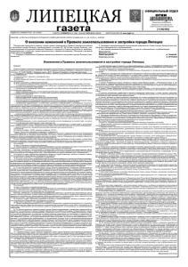 ИЗДАЕТСЯ С 6 ЯНВАРЯ 1918 г. № 5 (25883) СУББОТА, 12 ЯНВАРЯ 2019 ГОДА ВЫХОДИТ ПЯТЬ РАЗ В НЕДЕЛЮ ЭЛЕКТРОННАЯ ВЕРСИЯ: www. lpgzt. ru [1-4 ( 442-445)] Официальная информация городского Совета депутатов и администрации города Липецка ОФИЦИАЛЬНЫЙ ОТДЕЛ РЕШЕНИЕ 42 СЕССИИ ЛИПЕЦКОГО ГОРОДСКОГО СОВЕТА ДЕПУТАТОВ ПЯТОГО СОЗЫВА № 813 от 25.12.2018, г. ЛИПЕЦК О внесении изменений в Правила землепользования и застройки города Липецка Рассмотрев принятый в первом чтении проект изменений в Правила землепользования и застройки города Липецка, руководствуясь статьями 36, 59 Устава города Липецка, учи- тывая решение постоянной комиссии Липецкого городского Совета депутатов по жилищно- коммунальному хозяйству, градостроительству и землепользованию, Липецкий городской Совет депутатов решил: 1. Утвердить изменения в Правила землепользования и застройки города Липецка (при- лагаются). 2. Направить вышеуказанный нормативный правовой акт Главе города Липецка для под- писания и официального опубликования. 3. Настоящее решение вступает в силу со дня его официального опубликования. Председатель Липецкого городского Совета депутатов И. ТИНЬКОВ Секретарь сессии И. КРУТСКИХ Статья 1 Внести в Правила землепользования и застройки города Липецка, утвержденные решением Липецкого городского Совета депутатов от 30.05.2017 № 399 (в редакции решения Липецкого городского Совета де- путатов от 19.12.2017 № 561; «Липецкая газета», 2017, 10 июня; 27 декабря), следующие изменения: 1. В разделе I «ПОРЯДОК ПРИМЕНЕНИЯ ПРАВИЛ ЗЕМЛЕПОЛЬЗОВАНИЯ И ЗАСТРОЙКИ И ВНЕСЕНИЯ В НИХ ИЗМЕНЕНИЙ»: 1) пункт 6 статьи 1 признать утратившим силу; 2) в статье 4: а) абзац четвертый пункта 2 после слов «публичных слушаний» дополнить словами «или обществен- ных обсуждений»; б) пункт 3 изложить в следующей редакции: «3. К полномочиям администрации города Липецка в области землепользования и застройки относятся: — составление заключения по результатам публичных слушаний или общественных обсуждений по документации по планировке территории; — организация и проведение публичных слушаний или общественных обсуждений по документации по планировке территории; — предоставление решения о согласовании архитектурно-градостроительного облика объекта; — предоставление заключения о соответствии проектной документации сводному плану подземных коммуникаций и сооружений; — выдача разрешений на строительство; — выдача разрешений на ввод объектов в эксплуатацию; — изъятие земельных участков для муниципальных нужд; —принятие решения о резервировании земельных участков в границах города для муниципальных нужд; — осуществление муниципального земельного контроля в границах города Липецка; — направление уведомления о соответствии указанных в уведомлении о планируемом строитель- стве параметров объекта индивидуального жилищного строительства или садового дома установленным параметрам и допустимости размещения объекта индивидуального жилищного строительства или садо- вого дома на земельном участке, уведомления о несоответствии указанных в уведомлении о планируе- мом строительстве параметров объекта индивидуального жилищного строительства или садового дома установленным параметрам и (или) недопустимости размещения объекта индивидуального жилищного строительства или садового дома на земельном участке на территории города Липецка; — 