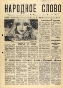 Народное слово. 1992 г. (п. Лев-Толстой)