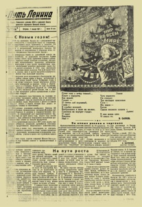 'Ж--?-' ъг**>**••*+*/***"* VVVА »~-»..| «•VV^Н-иЛИ-ИМЯ/I»/ иль/Тенина 1 Усманск ого райк ома КПСС и районного Совета депутатов трудящихся Липецкой области Вторник , 1 января 1957 г. Цена 15 коп. С Н о в ы м г о д о м ! ------ 6 год окончился. Прошёл он с напряжённой тру- штельиости, в неутомимой борьбе за осуществле- дчественных задач, намеченных в решениях _ХХ Ж С . «Советская страна стала ещё более сильной, — я в постановлении декабрьского Пленума ЦК выросла её экономическая и оборонная мощь, по- ( материальное благосостояние народа». всенародную борьбу за дальнейший подъём на- хозяйства, за укрепление могущества Родины истицу своего труда труженики и нашего района, гордятся своими успехами коллективы махороч- шки, птицекомбината, фермзавода, райпитцеком- гипографии и ряда других промышленных пред- обеспечившие досрочное выполнение плана пер- а шестой пятилетки. В 1956 году значительно экономика наших колхозов. Они дали стране боль- 1 , молока, мяса и других продуктов сельского хо- Богаче стал колхозный трудодень. ' 'уклонном росте материального благополучия тру- района говорят цифры и факты, публикуемые в гаем номере нашей газеты. Труженики города и р лучше одеваться, больше приобретать ценных меть сбережений на лицевых счетах в сберега- а с с е и в Госбанке. Только за один год индиви- . вклады в райсберкассе возросли на 1.890.000 Та пять миллионов рублей больше, чем в 1955 пли трудящиеся района промышленных и продо- ных товаров! , хи минувшего года бесспорны, но, оценивая их :нству, трудящиеся района, как и все советские . 1 закрывают глаз на недостатки, не упускают из шённых задач. Недостатков в работе и в жизни ё немало, а задачи, которые надо решать не т я , сложны и ответственны. -уженные решениями декабрьского Пленума ЦК ботники промышленных предприятий должны ещё бороться за развитие и совершенствование про- •. I за непрерывный рост производительности тру- ( »вых же дней нового года, второго года шестой I, надо добиваться безусловного выполнения про- нных планов на каждом предприятии, д тружениками колхозов и МТС стоит задача: ещё (обиваться повышения урожайности колхозных продуктивности общественного животноводства. > тать в новом году плодотворнее, не повторять, ошибок и промахов— к этому должны стремиться ( колхозники, механизаторы и специалисты сель- гайства, учителя и врачи— все труженики нашего шым годом, дорогие товарищи! Желаем Вам в на- м году больших успехов в производственной и ;изнп! Ильич с портрета, Как живой, Глядит — И светел лоб огромный, Глаза — В улыбке молодой. Взобравшись к маме на колени, Сынишка на портрет глядит. И вдруг Впервые Имя — Чуть нараспев Он говорит. Так начинает поколенье Свое — Мы знаем — Бытие Одним великим словом — Денин! В нем жизнь сама И смысл ее. В. САЯНОВ. | Производственными успехами ! встретили новогодний праздник { работники отделения торга. 1Годовой план товарооборота {они выполнили ещё к 25 де- 1кабря. В дни предпраздничной {торговли сверх плана реали з о в ан о на один миллион руб л е й промышленных и продо- {вольственных товаров. Против 11955 года товарооборот уве- а н о в ы е у с п е х и в т о р г о в л е личился на 16 процентов. Со кратились издержки обращения, и только на этом за И месн- цев сэкономлено 248 тысяч рублей, прибыль превысила плановую на 144 тысячи руб лей. Лучших результатов в со ревновании за досрочное вы полнение годового 