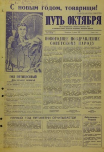 ■ <*, и л а с ”йг;П !;:;й :2 ’ ^Ч . с и г • ■'•! ;1'Ж-:, --й. 1. С новым годом, товарищи! V ч ПРОЛЕТАРИИ ВСЕХ СТРАН. СОЕДИНЯЙТЕСЬ! ПУТЬОКТЯБРЯ ОРГАН ЛЕБЕДЯНСКОГО РАЙОННОГО КОМИТЕТА КПСС И РАЙОННОГО СОВЕТА ДЕПУТАТОВ ТРУДЯЩИХСЯ ЛИПЕЦКОЙ ОБЛАСТИ НОВОГОДНЕЕ ПОЗДРАВЛЕНИЕ СОВЕТСКОМУ НАРОДУ ? год ПЯТИДЕСЯТЫЙ День пятьдесят четвертый УСПЕШНО справились с годовым планом по выпуску- валовом и товарной продукции лебедянские машиностроители. НА 102,3 ПРОЦЕНТА выполнен годовой план производства по валовой и товарной продукции коллективом завода строительно отделочных машин. Сверх плана произведенр продукции на 80 ты сяч рублей. ДОСРОЧНО, 25 декабря коллектив автобазы № 5 выполнил годовой п,\ан по грузообороту в приведенных тонно-километрах на 103 процента. Замечательно трудились в минувшем году не только ветераны-водители А. Ушаков, Ср. Бабин, Н. Зайцев, но и моло дежь: С. Кочетов, А. Сафонов, А. Вощаникнн. Они на несколько месяцев раньше выполнили годовой план. В ЧЕСТЬ 50-летия Советской власти работники смешторга 25 декабря выполнили годовой пла» по товарообороту. Сверх плана в минувшем году продано товаров на 58 тысяч рублей. ПОБЕДИТЕЛЯМИ в социалистическом соревновании хозяйств района по производству мяса на 100 гектаров сельхозугодий стали животноводы совхоза «Культура». По 43,6 центнера — это их результат. СОВХОЗ «ПЕРВОМАЙСКИЙ» продал государству 5 млн. 530 тысяч яиц. Победителями в социалистическом соревновании стали птичницы Наталья Тимофеевна Чернецова и Мария Степанов на Сазонова. Каждая из них получила за год по 154 яйца от несушки. ПОЧТИ 7.000 ЦЕНТНЕРОВ мяса и около 20.000 центнеров молока продали государству в первом году новой пятилетки жи тели района. Дорогие товарищи* и друзья! Через несколько минут Кремлев ские куранты возвестят о наступ лении Нового, 1967 года. По доброй *градиции мы прово жаем уходящий год, тепло про щаемся с ним. Чем примечателен минувщий год? Это был год XXIII съезда КПСС, ознаменовавшего новый крупный шаг Советской страны по пути строительства коммунизма. Съезд ярко продемонстрировал интернациональную солидарность нашей ленинской партии со всеми странами социализма, с коммуни стами всего мира, со всеми борца ми против империализма. Это был первый год новой пятилетки, год больших свершений советского на рода, успешного развития народ ного хозяйства и дальнейшего по вышения благосостояния трудя щихся. Хорощо потрудился ге роический рабочий класс. В стра не значительно увеличен выпуск промышленных изделий, сооруже ны новые фабрики и заводы, жи лые дома и школы, возникли це лые города и поселки. Крупных успехов добились труженики села. Они вырастили хороший урожай основных культур. Государством закуплено больше, чем когда-либо ранее зерна, хлопка, подсолнечни ка, мяса, молока, яиц. Это позво ляет надежно обеспечить потреб ности населения в продуктах сель ского хозяйства. Плодотворной была деятельность нашей народ ной интеллигенции. Страна обога тилась новыми достижениями науки, техники, культуры. Это был год дальнейшего упро чения международных позиций Со ветского государства, укрепления мировой системы социализма, на растающей борьбы народов про тив империалистической агрессии, за свободу, мир и социальный прогресс. Дорогие товарищи!* Наступаю щий год входит в наш дом, в большую и дружную семью совет- ЦЕНТРАДЬНЫП КОМИТЕТ КПСС ских