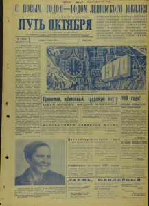 Пролвтирии всех стран, соединяйтесь! И ОРГАН ЛЕБЕДЯНСКОГО РАЙОННОГО КОМИТЕТА КПСС РАЙОННОГО СОВЕТА ДЕПУТАТОВ ТРУДЯЩИХСЯ ЛИПЕЦКОЙ ОБЛАСТИ № 1 (5616) Год издания 40-Р Четверг, 1 января 1970 г. Цена 2 коп. — С Новым годом! С новым счастьем! —слышится сегодня по всюду. И эти поздравления — от чистого сердца. Каждый, огляды ваясь на год ушедший, вспоминая все хорошее, мечтает о том. чтобы в новом году наши дела шли еше лучше. Отмечая допущенные ошиб ки. промахи, мы делаем вывод — не допускать подобною в новом году. А нам предстоит сделать много, поработать как никогда на пряженно. творчески: ведь нам надо сдержать слово, выполнить свои обязательства в честь 100- летия со дня рождения В. И. Ленина. 1970 год — особенный. Это год славного ленинского юбилея. По радовать Родину трудовыми по дарками — к этому направлены мысли и дела каждого советского человека. Н сегодня, в день перво го дня нового года, мы желаем всем трудящимся района воплоще ния мечты, успехов в труде, по- настоящему крепкого здоровья, истинного человеческого счастья. Наше самое теплое и искреннее поздравление с Новым годом мы шлем всем нашим читателям, на шим рабочим и сельским коррес пондентам. Мы желаем вам. доро гие друзья, успехов в вашей рабо те, укрепления связи с редакцией. В новом году мы ждем от вас пи сем о славных делах тружеников города и села, о том, как готовят ся они к ленинскому юбилею, как идет 100-дневная ленинская трудо вая вахта. Мы ждем писем о жизни рабочих и колхозников, ра ботников культуры, здравоохране ния, народного образования, тор говли, бытового обслуживания, учащихся, о простых советских людях, строящих коммунизм. Будем же стремиться в новом году делать районную газету луч ше, чтобы она стала боевым по мощником районной партийной организации в решении задач, пос тавленных партией. К НОВЫМ УСПЕХАМ. ТОВА РИЩИ! С НОВЫМ ГОДОМ. ДРУЗЬЯ! ПРОДОЛЖАЯ ДЕЛО ЛЕНИНА, СОВЕТСКИЙ НАРОД УПОРНЫМ ТРУДОМ УМНОЖАЕТ ОБЩЕСТВЕННОЕ БОГАТСТВО, РАЗВИВАЕТ СОЦИАЛИСТИЧЕСКУЮ ДЕМОКРАТИЮ, НАУКУ И КУЛЬТУРУ, ПРОЯВЛЯЕТ НЕ УСТАННУЮ ЗАБОТУ ОБ УКРЕПЛЕНИИ ОБОРОННОГО МОГУЩЕСТВА СОЦИАЛИ СТИЧЕСКОЙ РОДИНЫ, СТРОИТ ЖИЗНЬ, ДОСТОЙНУЮ ЧЕЛОВЕКА. Из Тезисов ЦК КПСС И< ИЮ- летию со дня рождения В.задимпра Ильича Ленина». Рисунок художника Э. Лукасика (и.здатсльство «Московская правда»). Фотохроника Т.АСС. Принимай, юбилейный, трудовую вахту 1869 года! о я т ь » н о в ы х в и д о в и з д 1 а л и и Большую трудовую победу одержал коллектив- инструментального завода, выполнив пятилетнее задание по росту производительности труда за четыре года. Досрочно завершен годовой план по всем показателям. На предприятии освоено пять новых видов изделий. Свои обязательства по эко номии материалов коллектив выполнил за один надцать месяцев, сэкономив дополнительно к пла ну 7 тонн остродефицитных цветных металлов. Коллектив завода с честью несет 100-дневную ленинскую трудовую вахту. Все производствен ные цеха и участки работают ритмично, готовая продукция поступает на склад по часам. Токари А. Ф. Воронин и А. В. Назаров, полировщица 3. В. Сдобникова, упаковщица А. Р. Пашинцева и .многие, многие другие инструментальщики выпол няют сменные нормы на 125— 130 процентов, вы пуская продукцию только отличного качества. Н. ЗАЦЕПИН, председатель завкома. 3 1 О Л О 1 С О - С В Е Р Х Г О Д О В О Г О ;На три недели раньше срока ра- Особенно весомый вклад в эту ботинки 