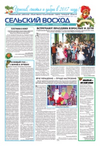 №1 (12455) 1 января 2017 год воскресенье 12+ Измалковская районная общественно-политическая газета Липецкой области основана 28 мая 1931 года СЕЛЬСКИЙ ВОСХОД ТЕЛЕГРАММА В НОМЕР ДОРОГИЕ ЗЕМЛЯКИ! УВАЖАЕМЫЕ ЛИПЧАНЕ! От всей души поздравляем вас с наступающим Новым годом и Рождеством Христовым! В эти предпраздничные дни мы с надеждой смотрим в будущее, находимся в ожидании ярких событий и добрых свершений. В новогоднюю ночь мы всегда стараемся быть вместе с близкими и дорогими нам людьми. Пусть наступаю- щий год принесёт в каждый дом удачу и благополучие, станет успешным и плодотворным во всех добрых делах, осуществле- нии намеченных планов, оправдает самые лучшие надежды. И даже если порой трудности кажутся непреодолимыми, не опускайте руки, работайте, создавайте собственное счастье и дарите его всем окружающим людям! Испытания, слож- ности и проблемы заставляют нас собраться, мобилизовать все свои ресурсы, искать и находить новые пути развития. От всей души желаем вам, дорогие земляки, крепкого здоровья, сил и мудрости, душевного тепла и любви, мира и согласия в семьях, уверенности в завтрашнем дне и радост- ного новогоднего настроения! Олег КОРОЛЁВ, глава администрации Липецкой области. Павел ПУТИЛИН, председатель областного Совета депутатов. В НОВЫЙ ГОД — С ВЕРОЙ В ЛУЧШЕЕ Дорогие земляки! Уважаемые измалковцы! Уходит в историю 2016 год. Для каждого из нас он принёс определённые пере- мены, вдохновил на поиски лучших методов работы, помог осознать, что мы можем и должны жить лучше. Сегодня по показателям социально- экономического развития Измалковский район входит в число динамично развива- ющихся муниципальных об- разований Липецкой области. Но тот результат, с которым завершили сельскохозяй- ственный год наши аграрии, а именно — рекордно высокий урожай пшеницы, 106 тысяч тонн при урожайности 40 центнеров с гектара, вселяет твёрдую уверенность в том, что в областном рейтинге нам вполне по силам занимать лидирующие позиции. Хочу подчеркнуть, что по итогам 2016 года наш район выглядит достойно по всем направлениям своей жизне- деятельности. Прежде всего, нужно отметить стабиль- ность в строительстве жилья, в обеспечении государствен- ных гарантий в вопросах своевременной и достойной оплаты труда, в выплате льгот и пособий, в начислении пенсий. Радуют результата- ми работы педагоги района, внедряющие в образователь- ный процесс передовой опыт. Их надежды оправдывают наши школьники, становясь победителями и призё- рами даже всероссийских конкурсов и соревнований. В 2016 году впервые за много лет по итогам футбольного сезона наши ребята смогли войти в тройку лучших команд Липецкой области, и теперь ими гордятся и наставники, и болельщики, и односельчане. Всё больше внимания мы уде- ляем пропаганде здорового образа жизни. Сегодня уже не десятки, а сотни жителей посещают бассейн, с жела- нием принимают участие в спортивных мероприятиях, занимаются спортом в систе- ме. Это позволяет надеять- ся на то, что поставленные главой Липецкой области О. П. Королёвым задачи по оз- доровлению детей и взрослых мы обязательно выполним. Олег Петрович инициирует новые перспективные про- екты для того, чтобы улучшить качество жизни сельского труженика. Так, продолжает развиваться и в нашем районе кооперативное движение. В сельских поселениях успеш- но работают и отк