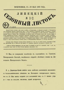 ВОСКРЕСЕНЬЕ, 1 8 ІЮНЯ, 1889 ГОДА. ^ ^ ^ ^ ^ ^ ^ Липецкій Листокъ выходитъ одинъ разъ въ недѣлю, по Воскресеньямъ, по слѣдующей программѣ: 1) Распорядитель, иыя постановленія Липецкихъ Минеральныхъ Водъ, а также объявленія и медицинскія указанія, относящіяся до лѣчащих ся па курортѣ; 2) Описокъ Врачей, практикующихъ на водахъ, съ обозначеніемъ ихъ мѣста жительства, спеціальности и пріонныхъ часовъ; В) Синеокъ лицъ, пріѣзжающихъ на лѣчебный сезонъ; 4) Росшісаніе часовъ игры оркестра музыки и другихъ развлеченій дли больныхъ, назначаемыхъ Правленіемъ минеральныхъ водъ на послѣдующую недѣлю; 5) Свѣдѣнія— о количествѣ отпущенныхъ мѣстныхъ лѣчебныхъ средствъ, о статистикѣ лѣчащихся и вообще о характеристикѣ врачебной дѣятельности лѣчебнаго сезона за истекшій мѣсяцъ; <>) Обозначеніе времени прихода и отхода поѣздовъ изъ Липецка и въ Липецкъ но линіи Орловско-Грязской желѣзной дороги; 7) Метеорологическія наблюденія и 8) Частныя объявленія. Отдѣльныя номера Липецкаго Сезоннаго Листка продаются по 5 коп. сер. въ лѣтней конторѣ, находящейся въ Ниж немъ минеральномъ саду, въ библіотекѣ при Курзалѣ и въ кумысномъ павильонѣ, находящемся въ Верхнемъ саду. Подписка на Листокъ принимается и на весь сезонъ съ доставкою на долъ п съ пересылкою, цѣна 1 руб. сер,, подписываться можно только въ Лѣтней Конторѣ Липецкихъ минеральныхъ водъ. Въ мужскомъ отдѣленіи ваннаго зданія, ежедневно, отъ 81* до І 0 1і2 час. утра, никто изъ лѣчащихся не можетъ принимать ваннъ, «продол женіи всего текущаго лѣчебнаго сезона; такъ какъ часы эти отданы въ распоряженіе прибывшихъ на Липецкую бальнеологическую станцію для лѣченія воспитанницъ институтовъ Вѣдомства Учрежденій ИМІІВ- РѴГРИЦЫ МАРІИ. И. д. Директора-Врача имѣетъ честь извѣстить желающихъ пользовать ся бальнеологическимъ лѣченіемъ па Липецкихъ минеральныхъ водахъ, что съ 11 Іюня ваппы открыты для пользованія пми, съ 7 часовъ утра до 4 часовъ но иолудни, ежедневно, кромѣ воскресенья.