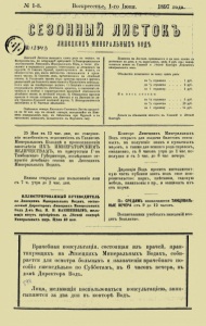 Л? 1-й. Воскресенье, 1-го Іюня. ,, 1897 года. -шишей мітіать 1 ЪіЗУ/3 Л Ш Д Ш Ъ МИНЕРАЛЬНЫХЪ ВОДЪ, | Липецкій Листокъ выходитъ одинъ разъ въ недѣлю, по | Подписка на Лпстокъ принимается и на весь сезонъ съ Воскресеньямъ, по слѣдующей программѣ: 1) Распорядительныя доставкою на. домъ и съ пересылкою, цѣна 2 руб. сер., подпи- постановленія Липецкихъ Минеральныхъ Водъ, а также объ* сываться можно въ Главной и Лѣтней Конторѣ Липецкихъ явленія и медицинскія указаніи, относящіяся до лѣчащихся на минеральныхъ водъ, курортѣ; 2) Списокъ Врачей, практикующихъ на водахъ, съ обозначеніемъ ихъ мѣста жительства, спеціальности и пріем- Объявленія печатаются за плату одинъ разъ; пыхъ часовъ; 3) Списокъ лпцъ, пріѣзя:ающнхъ на лѣчебный сезонъ; 4) .Росписаніе часовъ игры оркестра музыки и другихъ і, .ТПЯНЯІІ, Т пѵГ. развлеченій для больныхъ назначаемыхъ Правленіемъ мпнераль- к ^ ’ * ' * • пыхъ водъ на послѣдующую недѣлю; Г>) Свѣдѣнія о количествѣ 7* страницы . - . 2 руб. отпущенныхъ мѣстныхъ лЬчеоныхъ средствъ, о статистпкѣлѣ- за 1 страницу. 4 руб. чащихся п вообще о характеристикѣ врачебной дѣятельности лѣчебнаго сезона за истекшій мѣсяцъ; 6) Обозначеніе времени II а в е с ь с е з о н ъ : прихода и отхода поѣздовъ изъ Липецка и въ Липецкъ но ли- ніи Орловско-Грнзекой желѣзной дороги; 7) Метеорологическія за V* страницы . . . ,5 руб. наблюденія и 8) Частныя объявленія. ' К ; • за */, страницы . . . .1 0 руб. Отдѣльные номера Липецкаго Сезоннаго Листка продают- За * страницу . . . . 15 руб. ся по 10 коп. сер. въ лѣтней конторѣ, находящейся въ Ниж немъ минеральномъ саду, въ библіотекъ при Курзалѣ и въ . Деньги за объявленія впоснтся въ Главной и Лѣтней кумысномъ павильонѣ, находящемся въ Верхнемъ саду. Конторѣ. 25 Мая въ 12 час. дня, но соверше- Контора Липецкихъ Минеральныхъ ніи молебствія съ водосвятіемъ въ Главномъ Водъ откры та для выдачи билетовъ сезон- Минеральномъ Колодцѣ и провозглашенія ныхъ, на полученіе ваннъ и кумысныхъ многолѣтія ИХЪ ИМПЕРАТОРСКИМЪ марокъ, а также для всякаго рода справокъ, ВЕЛИЧЕСТВАМЪ, въ присутствіи Г-на ежедневно, съ 8 часовъ утра до 1 час. тіо- Тамбовскаго Губернатора, послѣдовало от- полудни и съ 5 час. до 8 час вечера/ крытіе лечебнаго сезона на Липецкихъ _ ___ Минеральныхъ Водахъ. ______ Дирекція Водъ проситъ интеллигент ною часть публики взять подъ свое пок- Ваниы открыты для пользованія ими ровительство: паркъ, цвѣтники, садовую съ 7 ч. утра до 2 час. дня. мебель, павильоны и пр., и защищать ихъ ______ отъ порчи. ИЛЛЮСТРИРОВАННЫЙ ПУТЕВОДИТЕЛЬ ' но Липецкимъ Минеральнымъ Водамъ, состав- По СРЕДАМЪ назначаются ТАНЦОВАЛЬ- ленный Директоромъ Липецкихъ Минеральныхъ НЫЕ ВЕЧЕРА отъ 9 до 12 часовъ. Подъ Д-мъ Мед. Н. Н. МАКІНЕЕВЫМЪ, жела ющіе могутъ пріобрѣтать въ Лѣтней конторѣ | Воспитанники учебныхъ заведеній вхо- Минеральныхъ водъ. Цѣпа АО кои. дятъ безплатно. Врачебная консультація, состоящая изъ врачей, прак тикующихъ на Липецкихъ Минеральныхъ Водахъ, соби рается для осмотра больныхъ и назначенія врачебнаго по собія еженедѣльно по Субботамъ, въ 6 часовъ вечера, въ | домѣ Директора Водъ. і ;; | Лица, желающія воспользоваться консультаціею, запи сываются за два дня въ контооѣ Водъ. , . ... г : . *г , . - щ ; - т - . ш . : . . ѵ ^~ А!