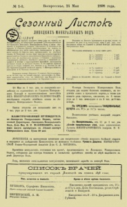 Сезонный листок липецких минеральных вод 1898 г.