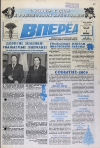 к к [ ^ © ^ ^ ^ © ^ © © s a ^ © ^ © ^ © © [ b Q S G ШРЕД Общественно-политическая газета Воловского района Липецкой области Газета основана в 1931 году 2010 ГОД ЯНВАРЬ ПЯТНИЦА ДОРОГИЕ ЗЕМЛЯКИ! УВАЖАЕМЫЕ ЛИПЧАНЕ! От всей души поздравляем вас с наступающим 2010 годом и Светлым праздником Рождества Христова! С овсем немного времени остаётся до того момента, когда 2009 год уйдет в прошлое. Этот год стал серьезной вехой в развитии России и нашего регио на. Провожая год уходящий, хочется от метить, что Липецкая область, как и вся страна, завершает год позитивными ре зультатами, несмотря на объективные трудности, связанные с мировым экономи ческим кризисом. Предварительные ито ги года показывают, что область прочно входит в число стабильно развивающихся регионов Российской Федерации. У кожительный эффект дает работа по Н^Врсификации экономики и выводу ее на" инновационный путь развития за счет реализации проектов по созданию и развитию нсвых производственных мощ ностей. Второй год подряд область при знана самой привлекательной для инвес тиций среди субъектов РФ. Наш регион не только подтвердил свое первенство, но и остался единственным субъектом с мини мальным уровнем инвестиционного риска. Мы по праву гордимся тем, что наша область по целому ряду экономических показателей является одним из лидеров в Центральном Федеральном округе и Рос сии. В промышленности, сельском хозяй стве все активнее реализуются инвестици онные и инфраструктурные проекты. Ре гион сохраняет за собой лидирующие по зиции среди субъектов РФ по урожайнос ти сельскохозяйственных культур, кото рая превысила 37 центнеров с гектара. Область остается в числе лидеров в Центрально-Черноземном регионе, зани мая первое место по обороту розничной торговли и общественного питания на од- н о г ^ш т е л я . ^В с ом н ен и я , все достигнутые успехи ест1^ртзультат постоянного внимания к человеку-труженику, к его нуждам и забо там. В результате принятых антикризис ных мир улучшается ситуация на рынке труда. Уровень безработицы в Липецкой области является одним из самых низких в России. В уходящем году при содействии службы занятости трудоустроено более 41 тысячи человек. Отличительной чертой бюджета Ли пецкой области является его социальная направленность. Приоритетными остают ся расходы на финансирование отраслей социально-культурной сферы: образова ния, культуры, здравоохране ния, спорта, социальной за щиты граждан. Среди областей Централь ного Черноземья наш регион занимает первое место по тем пам роста вводимого жилья и по вводу жилья на душу насе ления. Благоустраиваются, населенные пункты, преоб ражаются улицы и дороги, закладываются парки и скверы. Проложены новые авто магистрали и необходимые ком муникации, в городах и села: появились новые школы, плава тельные бассейны, дома культуры и дру гие объекты социальной сферы. Липецкая область располагает всем необходимым для решения задачи по стро ительству "умной" экономики, развитию социальной сферы. Все то новое, что уже сегодня мы делаем в сельском хозяйстве, в промышленности, в реформе по опти мизации здравоохранения и образования, в строительстве и других отраслях - все это входит в план модернизации экономи ки и улучшения качества жизни населения региона. Уверены, что модернизационный план, намеченный Президентом страны Дмитрием Медв
