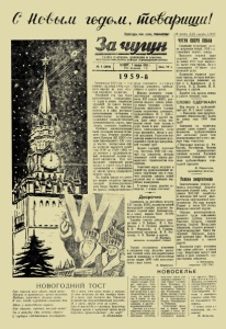 Пролетарии всех стран, соединяйтесь! В честь XXI съезди 1\ПСС <я»*вим«вв«ге®Ч1ноет ГАЗЕТА Г) ЛЕТКОМА, ДИРЕКЦИИ И ЗАВКОМА МЕТАЛЛУРГИЧЕСКОГО ЗАВОДА «СВОБОДНЫЙ СОКОЛ» Ч Е Т В Е Р Г , 1 я н в а р я 1 9 5 9 г , Год издания 7-й Цена 10 к. На кончился 1954 год — год славных трудовых птбод совет ского народа во всех обла стях народного хозяйства. Минувший год был годом вдохновенного созидательно го труда и новых творческих дерзаний. До самого послед него его часа на газетные полосы и в эфир поступали вдохновляющие сообщения о замечательных достижениях тружеников социалистической промышленности, строек, тран спорта, сельского хозяйства. Особенно знаменательными были последние месяцы истек шего года. Решение сентябрь ского! Пленума ЦК КПСС о со зыве внеочередного XXI съ е з да партии. контрольные циф ры развития народного хозяй ства СССР на 1959—1965 го ды вызнали у трудящихся но вый, невиданный подъем тру довой активности. Этот все народный творческий порыв вызнал к жизни ясную форму соревнования — соревнование за звание бригад коммунисти ческого труда. Па нашем заводе это почет ное звание получила бригада слесарей железнодорожного депо Петра Харпна. Нод зн а мя бригад коммунистического труда становятся л у ч ш п е бригады доменного, труболи тейного II других цехов. Широко развернув социа листическое соревнование в честь XXI съезда КПСС, кол лектив наш его завода добил ся новых трудовых успехов. Досрочно выполнили "годовые планы коллективы доменного, труболитейного № 1, ЦЭС— ПВС, копрового и других це хов. Дано сверх плана нес колько тысяч тонн чугуна и труб, более 4 млн. киловатт- часов электроэнергии, сотни тонн фасонного литья и дру гой продукции. Гордостью кол лектива является недавно всту пивший в строй цех центробеж ной отливки труб. Прожит хороший, чудесный год. Наступил 1959 год—пер вый год семилетки, которая знаменует собой период раз вернутого строительства ком мунизма. Советский народ вступает в новый год, преисполненный ве ликих творческих сил и горя чего желания сделать новый крупный шаг к сияющим вер шинам коммунизма. С новым годом, дорогие то варищи, с новым счастьем! ЧУГУН СВЕРХ ПЛАНА Славными трудовыми дела ми встретили новый, 1959 л-д. доменщики нашего завода "Выполнив годовой план досрочно, они выплавили до конца 1954 года несколь ко тысяч тонн чугуна. За год сэкономлено 50 тысяч гони железной руды. Коллектив гордится успе хами бригад, которые возглав ляют мастера доменных пе чей А. А. Кривеньков, А. П. Усачев, В. Д. Беляев, Н. Я. Веретин и другие. Давайте так, друзья, всегда в работе обгонять года. СЛОВО СДЕРЖАЛИ Над входом в труболитей ный цех № 1 висит плакат: — Выполним свои предсъез довские обязательства! Дадим до конца, года 5000 тонн труб! Завершив на полмесяца раньше срока годовой нлан, коллектив труболитейщиков дал несколько тысяч тонн водопроводных труб в счет пер вого года семилетки. /П ередовы е бригады тт. Фи л а то в а , Мплованова, Межова ежедневно перевыполняют сменные задания. Хорошими трудовыми подарками встре тили труболитейщики ново годний праздник. 12. Стуналов, председатель" цехкома. Досрочно Соревнуясь за достойную встречу XXI съезда КПСС, коллектив нашей кислородной станции досрочно вы полнил годовой план Дополнитель но к плану выдано более 30.000 кубометров кислорода. Хороших успехов добились аппа ратчики А. П. Бабкин, В. А. Ино земцев, А.