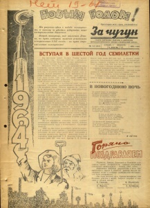 Пролетарии всех стран, соединяйтесь! Мы уверенно идем к победе коммуниз ма, и никому не удастся задержать наше поступательное движение. Вперед, товарищи, под знаменем Лени на, по пути, который намечен решениями исторического XXII съезда, — по пути стро ительства коммунизма! ГАЗЕТА ПАРТКОМА, ЗАВКОМА И ДИРЕКЦИИ МЕТАЛЛУРГИЧЕСКОГО ЗАВОДА сСВОБОДКЫИ СОКОЛ 1 № 1и2 (863) С Р Е Д И ,1 ЯНВИРЯ Год.ивдаяия 1964 года ВСТУПАЯ В ШЕСТОЙ ГОД СЕМИЛЕТКИ I ! ш Ж X- Над пр( 1 ГТ( 111 ами иашсП 1)слпкпп Родины взошло 10^111110 Пор.ш'о гида. Наступил 1НГ)4'гпд - шестой 1 'од п'милотки. ('оветс|Л|[1 народ унсршнш идет лшнтским ну том К’ С 1 ! 00 Му свотлому ОудуНВ'Му К(^ММу11ИЗ^^у. Минувший Ин>3 сод оы.т гидом выдающихся побед В развитии сонналнстнческои акономнкн и 1 'ул 1 >турЫ^. ;>а- мсчательиых производственных успехов добился в минув шем соду и К( 1 ллектив нашего завода. Годовой план Н (1 выпуску валовой Н1тдукцн11 сокзаьцы выно.1нн.1Н 1^ де кабря н шюда.тн сверх плана неско.ищо тысяч тонн чу- 1 уна. более 17.100 тонн труб, 17 тысяч оквПвалент- ных метров отоннте.н.ных раднатор(1В. 7 мн.1.тонов 800 тысяч кн.товатт-часон а.н'ктроаиергнн. , На сч(;т внедренни в нронзшедство новоП техннкн, не,редов(н1 техтщогнн. ранноналнзацнн я нзобретат('.ть- ства кчилектнв зав(|да добился зкономнн но себестои мости нродукннн на сумму около бОО твв'яч рублен при обязательстве 500 тысяч руб.той. Но плану новой техннкн в чугунолитейном дохе вв('дсны в зкеплуаташно два барабана ленрерывного деГн'твня но очистке сокинн ] 1 аднаторов. на двух.вагран ках вн(‘Дрен нрнроднын газ, смонтировано ^ но.туавтома- тнческн.х станков но изготов.те 1 нно сте[га,'нен отопитель ных радиаторов. Н труболитеГнюи цехе ,\« '> введена к зкенлуатаишп ноточкая .нГиня но изготов.тснню сте[га;ней раст])уба труб диаметром ЮО-150 мм. нереш'дены две вагранки на раб(»ту с нсно.тьзованнем нрироднопт газа. В трубо.тнтеГнгом це.хе .\ц 1 1 !ве;цч 1 а в зкснлуатацню кдк- сонодача, и ремонтно-м»'.ханнческо.м цехе освоена закалка запасных частей на высокочаст( 1 тной установке. 13-03, введены в зкснлуатацню гильотпиовые нп-,к 1 нби >1 для рез- металла. Все эти мероприятия щщво.тнлн заводу гни учить значительную зкономцн 1 материальных срг'дств. иовыснт!. нронзводите. 1 Ы 1 ость труда н механнзнроват 1 > трудоемкиг' процессы. 1003 год был годом дальнейшего развития творчес кой активности наших рабочих н 1Нг.1.'енерно-те.х11цческпх работников. Во всех цехах растет число передовиков н новаторов производства. Брш'ада инициатора почина но не]яч‘,мотру норм выработки Л. И. Филатова отлила сверх годового плана 400 топи труб. Бригада В. .Я. Ипатова выдала сверх плана 4.5(1 тонн труб, из шггорых М(с,|;но пролом,■ить водопроводную линию д.тиной 14 К 11 .томот| 1 ов. Ьригада стариич'о гориовоп» 11. В. ('ухариикова выда.ы сверх Г(|Довоп 1 и.гаиа 00(1 тони чуг'уиа-. Па заводе с кая,дым месяц 1 'м растг'т чис.ю брш'ад и ударников коммунистического труда. Вступая |г шестой год семилетки, сокольцы ти ны решимости .добиться тжы х ироизводственных успехов. Перед иами--Я 1 -ная це.н,. велич(;ст 1 !е 1 Гныо задачи. (' Новым годом, дорги'ие товарищи, с- новыми успе хами в труде, с новым счастьем в мтзии! В НОВОГОДНЮЮ н о ч ь По ро.’оюй зе.мле, по первопутке, К широко распа.хмуты.м лнер'ям ' Дедушка почтенный н малютка По.чой.тут к двенадцати часам. « . Пусть в нарядно убранной столовой С нп.м познако.мится наро.д. Это-^7гарып год, а это— Повын, Жить ко 10 |)о.му всего-