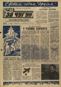 пролетарии всех стран, соединяйтесь! В РИТМЕ УСКОРЕНИЯ заЧУГУН^ ОРГАН ПАРТКОМА, ПРОФКОМА И ДИРЕКЦИИ ОРДЕНА ТРУДОВОГО КРАСНОГО ЗНАМЕНИ МЕТАЛЛУРГИЧЕСКОГО ЗАВОДА сСВОБОДНЫЙ СОКОЛ» № 1—№ 2 (2793-2794) Пятница, 1 января 1988 г. Год издания 36-й ЦЕНА 2 коп. ВСТРЕТИЛИ ДОСРОЧНО Сегодня первый день 1988 го да. А для труболитейщиков вто рого цеха он наступил еще 23 декабря, когда ови> досрочно спра вились с выполнением годового плана. Об этом успехе трудового коллектива навестила молния, вы вешенная в цехе. До конца года коллектив наше го цеха отправил потребителям дополнительно к плану декабря 220 тонн труб со Зааком качест ва. С наибольшей отдачей в пос леднем месяце прошлого года по работал коллектив смены Бориса Павловича Хазаева, выполнив ший п.пая на 107,7 процента. Брак составил 2,1 процента при допус тимой норме 2,4. Среди бригад лидировал кол-, лектив под руководством Михаи ла Алексеевича Сушкова, выпол- Н1ивший план декабря на 109 про центов. Брак равен 2,2 процента. По-ударному по-работалн в де кабре и звенья труболитейщиков Александра Ивановича Москале ва и Анатолия Николаевича По пова, перевыполнившие плановые задания. Коллектив цеха с хорошим на строением вступает в новый год, с которого наш завод переходит на полный хозрасчет и самофи нансирование. И. ИВАНОВА, бухгалтер трубцеха № 2. ТРУДОВЫЕ ДЕЛА ПРОШЕДШЕГО ГОДА КАЖДЫЙ РАОБТАЛ НА СОВЕСТЬ Есть о чем рапортовать коллекгпнву нс него авто транспортного цеха в но вогодний праздник. План двух лет пятилетки в ма- шшю • часах выполнен на 106,4 процента досрочно, 25 декабря. Производительно сть труда составила 107,8 процента, коэффициент ис пользования ГРУЭ5ОВОГО и автомобильного транспорта равен 8,3 процента. Благодаря большим усц- лиям к2(ждаго водителя, слесаря - ремонтника в 1987 году сэкономлено 2143 литра бензина и 17157 лит ров дизельного топлива. Добросовестно, с полной отдачей в течении всего прошлого года трудились автотрэнспортникч, стара тельно перевозили заводс кие грузы. Тем самым они способствовали ритмичной работе всего завод<жого коллектива. Мне, как секре тарю партийной организа ции, хотелось бы отметить водителей большегрузных маш'ин Н. И. Головкина М. А. Дмитриева. Они по истине увлечены своей ро мантической профессией, ко торая дарит им новые вст речи с людьми в разных уголках Родины А вот другие водители А. И. Плвсе«|Нов и Ю. Б Долгошеев перевозят гру зы по территории завода. И к своцм о.бязднйостям от норятся также честно, глубоким знан1нем дела. Б р и г а д о й слесарей по ремонту автотрансоорт- ной тедаик» у нас руково дит опытный, грамотный специалист В. Г. Максимов Воглааляемый им коллектив зорко следит за исправ яостью автомобилей, надеж но устраняет возникающие неисправности. И. ЗОЛОТАРЕВ, секретарь партийной организации автотранспортного цеха. Н а п ут я х п ер ест р ойки В УСЛОВИЯХ ХОЗРАСЧЕТА В этом году коллектив завода переходит на работу в условиях полного хозяйственного расчета и самофи нансирования. Наш корреспондент встретился с замес тителем директора завода Б. А. Столповским и попро сил его рассказать о том, какие задачи стоят в связи с этим перед сокольскимн металлургами. — Борис Андреевич, за водчане в какой-то степе ни уже подготовились к этой работе. Что показала проба сип! Начало 1987 года для за вода было напряженным и тяжелым, 1 января в до менном цехе случилась ава рия, а результате 