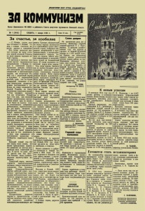 ПРОЛЕТАРИИ ВСЕХ СТРАН, СОЕДИНЯЙТЕСЬ! ЗЯКОММУНИЗМ Орган Данковского РК КПСС и районного Совета депутатов трудящихся Липецкой области № 1 (2845) СУББОТА, 1 января 1955 г. Цена 15 кэп. Год издания 26-й. З а счастье, за изобилие Слово доярки — С Новым годом, род ная Отчизна! С Новым г о дом, с новым счастьем, до рогие друзья и товарищи! Эти слова радостно зв у чат сегодня во всех у го л ка х нашей великой Родины, на всех языках народов на шей страны. В высоком и светлом зна чении звучит традиционное поздравление с Новым г о дом в советской стране. Провожая добрым словом год минувший, год больших свершений и вдохновенных Трудбв, мы встречаем Н о вый год с радостной верой в будущее, с окрыленной .мечтой, зная, что .он будет Очередной ступенью к но вым творчески м подви гам , новым достижениям и по бедам во славу социалисти ческой Родины, на благо миллионов советских людей. У ж е тридцать восьмой Вод мы встречаем Новый Вод с тех пор, ка к великий Ленин провозгласил наступ ление новой эры на земле, и не было ни одного года, Не отмеченного событиями Небывалыми, героическими. -Не раз враги, внешние и внутренние, пытались и еще будут пытаться помешать Нам в нашем победоносном движении вперед. Но трид цать семь лет показали, что никакие испытания не мо г у т устрашить и остановить людей, познавших радость и счастье свободного твор ческого труда. С полным сознанием своей правоты мы шли на эти испытания, и весь мир удивлялся и восхищался мужеству и стойкости советского чело века. Каждый новый год ста вит перед нами новые, все более грандиозные задачи. На решение их всегда под нимался весь советский на род. И пусть ни один шаг не дается нам без боя— тем больше наше удовлет ворение достигнутыми по бедами. Советский народ законно гордится замечательными плодами своего творческого созидания. Под руковод ством Коммунистической партии рабочий класс, кол хозное крестьянство, наша родная интеллигенция спло ченно ,^ уверенно идут впе ред, к победе коммунизма. Изо дня в день растет и крепнет социалистическая промышленность, на подъе ме находится сельское х о зяйство, неуклонно повы шается жизненный уровень населения. Исторические решения партии и правительства о крутом подъеме всех отрас лей сельского хозяйства всколыхнули колхозную до* ревню. Призыв, обращенный ко всему народу полностью и в кратчайшие сроки обес печить страну товарами ши роко го Потребления и про довольствием, а ле гкую про мышленность сырьем, до шел до сердец, забота пар тии взволновала и воодуше вила людей на беззаветный труд. И снова поднялся со ветский народ всем миром. Так, всем миром, брались мы за любое большое дело: создавали мо гучую инду стрию социализма, строили новые города. Всем миром решали Задачу коллективи зации сельского хозяйства. Всем миром защищали Ро дину от фашизма в Великой Отечественной войне. Т а ко вы у ж законы нашего об щества, таковы мы, совет ские люди. Всем миром взялись мы и за подъем великой цели ны и залежей, за новый быстрый рост народного благосостояния. Славно потрудились со всем советским народом гв минувшем году и трудящие ся нашего района. В про мышленности, в сельском хозяйстве достигнуты зна чительные успехи. У ж е теперь любой из на ших колхозов знает свой путь к полному расцвету. И нет ни одного из них, ко торый бы не ша гнул уж е в этом году на ступеньку выше. Настает вр