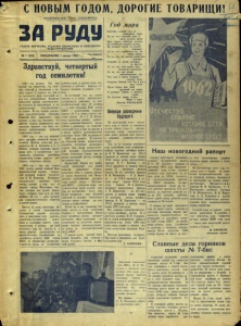 г т с новым годом, ДОРОГИЕ ТОВАРИЩИ! 1 ПРОЛЕТАРИИ ВСЕХ СТРАН, СОЕДИНЯЙТЕСЬ! ЗА РУДУ ГАЗЕТА ПАРТКОМА, РУДКОМА ПРОФСОЮЗА И ЛИПЕЦКОГО -РУДОУПРАВЛЕНИЯ № 1 (322) ' 1, ПОНЕДЕЛЬНИК, 1 января 1962 г. ь || Год издания 1-к Здравствуй, четвертый год семилетки I 1961 год агюшел. Это был третий год семилетки, год вели ких ообытийи свершений в на шей стране. С первого его дня и до послендего наш советский на род под руководством Коммуни стической партии самоотвержен но боролся за выполнение и пе ревыполнение тосудар'Ственно- го плана. И эта борьаб увенча лась замечательными успехами. Главный итог минувшего года состоит в том, что народное хо зяйство страны развивалось зна чительно быстрее, чем было на мечено контрольными цифрами семйлетнего-плана. 1961 год — это год величай шего триумфа советской науки и техники. Полеты советских кос монавтов Ю. А. Гагарина и Г. С. Титова, которые первыми проло жили путь в ко.смическое про странство, являются ярчайшим отражением гения нашего сво бодного советсокго народа. .1961 год — это год созыва XXII съезда нашей славной Ком мунистической партии, создан ной великим вождем человече ства В. И. Лениным. Всемирно- .нсторическое значение этого съезда состоит в том, что он принял новую Программу пар тии, которая, как яркий факел, будет освещать наш путь на бли жайшие 20 лет — путь построе ния коммунистического общества в нашей стране. Вметсе со всем советским на родом в .своем подавляющем большинстве хорошо потруди лись Б минувшем году рабочие, инженорно-гехнические работ ники и служащие нашего рудо управления. С первых же дней истекшего года на шахтах и в цехах широко развернулось со циалистическое сор'евао.вание за достойнуювстречу XXII съезда КПСС, за повышение производи тельности труда, за увеличение добычи руды, и мноиге наши кол лективы и рабочие бригадыдо бились больших трудовых успе хов. За истекший год на наших шахтах и в цехах значительно расширилось движение за ком мунистический труд. 17 октября — в день открытия XXII .съезда КПСС — .коллективам го.рняков шахты № 7 и сменегорногома стера шахты № 1 Г. Н. Косты лева присвоены звания коллек тивов коммунистического труда. Сейчасв движении за коммуни- .стический труд и быт нашахтах и в цехах нашего рудоуправления участвует более 700 трудящихся. 1961 год прошел. В полночь на Спасской башне кремлевские куранты отсчитали двенадцать ударов. Под звуки величествен ной мелодии Государствен ого ГимнаСоветскогоСоюза мы со рвали последний листок календа ря старогогода. Здравствуй, Новый год! Здрав ствуй, четвертый год нашей славной семилетки! Родина встречает тебя в полном расцве те своих творческих сил. Воору женные величайшими докучген- тами нашей эпохи — Програм мой КПСС, советские люди под руководством своей родной пар тии на протяжении всего года будуттрудиться с еще большей энергией и возьмут, обязательно возьмут новые рубежи на под ступах к коммнуизму! Будем же и мы, товарищи гор няки, вместе со всем советским народом Б наступившем Новом году трудиться лучше, произво дительнее, шире развернем со ревнование за досрончое выпол нение годового производственно го плана, за коммунистический труд и быт! СН 01 ВЫМгодом, дорогие това рищи! Вольпгих вам успехов в труде, большого счастья в лич ной жизни! ☆ Год мира Спасибо, старый год, за молодость твою, За то, что каждый день в моем родном краю Был сла