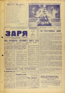 II II II и II II II II II II II II II II II. II II II II II II II II II II II II II II ■I II II II П у с т ь » б у д е т » . Бон часов плывет в простор широкий, Звезды льют свой ясный свет во тьму. Новый год, младенец краснощекий, Шлет привет народу моему. Родину под шалыо белоснежной В праздничном сияньи не узнать. Сколько задушевных слов и нежных Вдохновенно хочется сказать! Пусть же будет краше и богаче, 11 сильней любимая страна. Нам любые по плечу задачи, С партией — любая даль ясна. За успехи техники, науки, Мир и братство всех племен и рас Поднимают дружеские руки Звонкие бокалы в светлый час. С новым счастьем, дорогие люди! Пусть мечты смелей зовут вперед. Пусть же добрыми делами будет, Возвеличен наступивший год! ю. КРУГЛОВ. с. Красное. ОРГАН КРАСНИНСКОГО РАЙОННОГО КОМИТЕТА КПСС И РАЙОННОГО СОВЕТА ДЕПУТАТОВ ТРУДЯЩИХСЯ ЛИПЕЦКОЙ ОБЛАСТИ Цена 2 коп. Год издания 43-й № 1 (4706) ВТОРНИК, 1 ЯНВАРЯ 1974 года. ПРОЛЕТАРИИ ВСЕХ СТРАН, СОЕДИНЯЙТЕСЬ1 УКАЗ.ПРЕЗИДИУМА ВЕРХОВНОГО СОВЕТА СССР о награждении орденами и медалями передовиков сельского хозяйства За успехи, достигнутые во Всесоюзном социалистиче ском соревновании и проявленную трудовую доблесть в выполнении принятых обязательств по увеличению про изводства и продажи государству зерна и других про дуктов земледелия в 1973 году наградить ПО ЛИПЕЦ КОЙ ОБЛАСТИ (в том числе по Краснннскому району): (Продолжение. Начало в 156 номере «Зари»), СССР ОРДЕНОМ «ЗНАК ПОЧЕТА» Александрова Василия Гри горьевича — шофера совхоза «Краснинский». Аринина Василия Михайлови ча — тракториста колхоза име ни Крупской. Бакотина Ивана Дмитриеви ча — тракториста совхоза «По- ловневский». Бартенева Валентина Филип повича — комбайнера колхоза имени Калинина. Бессонова Михаила Николае вича — звеньевого колхоза «Россия». Дорофееву Валентину Ми хайловну —свекловичницу кол хоза имени Крупской. Иванникову Зинаиду Яковлев ну — заместителя председа теля колхоза «Заветы Ленина». Иванова Николая Васильеви ча — комбайнера колхоза «Светлый путь». . Исаеву Татьяну Ефремовну свекловичницу колхоза «Россия». Карпова Ивана Васильевича — шофера районного объеди нения «Сельхозтехника». Козеева Валентина Алексан дровича — тракториста колхо за «Заря коммунизма». Королькова Михаила Нико лаевича — механизатора сов хоза «Комсомольский». Малышева Ивана Григорье вича — тракториста колхоза имени Ленина. Медведева Михаила Андре евича — механизатора совхоза «Комсомольский». Митусова Николая Иванови ча — шофера колхоза имени Ленина. Монаенкова Федора Васнлье вича — механизатора колхоза «Родина». Никитина Дмитрия Иванови ча — тракториста совхоза «Краснинский». Панкова Алексея Михайло вича — тракториста колхоза имени Вавилова. Рассохина Василия Алексе евича — тракториста колхоза имени Калинина. Рубцова Ивана Петровича— механизатора колхоза «Свет лый путь» Руднева Алексея Федоровича — бригадира совхоза «Вос ток». Федюнина Владимира Алек сеевича — бригадира колхоза «Светлый путь». Харина Николая Тимофееви ча — механика колхоза «Рос сия». Шанина Виктора Николае вича — шофера колхоза «Свет лый путь». Юрьеву Варвару Ивановну — свекловичницу колхоза имени Ленина. (Продолжение следует). З А В Е Р Ш А Я Г О Д Т Р У Д О В О Й . . . Напраздничный стол Все большую популярность приобретает продукция Крас- нинского консервного за вода. В декабре в ассортименте выпускаемых ово