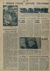 - г с н о в ы м г о д о м , ДОРОГИЕ ТОВАРИЩИ! Плакат художника В. Викторова. Издательство «Плакат». З Д Р А В С Т В У Й , Г О Д 1 9 8 3 - й ! с чувством законной гордости за свою многона циональную Родину, за ее трудовые саершешш на пути к коммунизму проводили советские люди год 19Ь2-й. Он останется яркой вехой в истории страны. Много знаменательных событий произошло в нашей жизни. Майский и ноябрьский Пленумы ЦК КПСС, XIX съезд ВЛКСМ, выборы в местные Советы на родных депутатов и, конечно же, празднование 60- летия образования Союза ССР. На майском (1982 г.) Пленуме ЦК КПСС была принята Продовольственная программа, в реализа цию которой определенн 1 *й вклад внесли и трудящие ся района. Земледельцы с честью выполнили народ нохозяйственные планы продаиси государству зерна, картофеля. На месяц раньше справились с планом по молоку животноводы, продав дополнительно бо лее 1000 тонн продукции. Порадовали садоводы, коллективы многих промыш.ченных предприятии. Все они работали под девизом «60-лети.а образова ния СССР— 60 недель ударного труда!» В районе выросло немало исттшных мастеров. Значительно больше стало доярок, получивших за год от каждой коровы более 3000 килограммов мо лока. А Пина Андреевна Олейникова из колхоза «Заря коммунизма» сумела установить своеобраз ный рекорд, надоив 4120 килограммов. В авангарде соревнования среди земледельцев шли механизато ры Н. Ф. Вошин и Н. С. Сальников из колхоза «Род 1 ша», А . В. Карпов из совхоза «Половневск!ш», водитель Ф. С. Бартенев из колхоза имени Вавило ва II многие другие. Планомерно реализовывалась и социальная про грамма. Сотни краснинцев справили новоселья в квартирах, построенных на средства колхозов, сов хозов, предприятий и организаций. Гостеприимно распахнул двери прекрасный районный Дом куль туры." Построены новые магазины на центральных усадьбах совхозов «Красное поле», «Майский» и других хозяйств. Увеличивается государственная по мощь семьям, имеющим детей, работающим мате рям, улучшается пенсионное обеспечение. Рас тет производство товаров народного потребления, расширяется сфера услуг. Немало нами сделано, но впереди трудная н на пряженная работа, направленная на решение жиз ненно важных задач дальнейшего развития совет ского общества. Будут они решены успешно — будет и дальше расти наша экономика, повышаться благо состояние народа. Как отмечалось на ноябрьско.м (1982 г.) Пленуме ЦК КПСС, первостепенное зна чение должно быть уделено реализации Продоволь ственной программы, планомерному развитию топ ливно-энергетического комплекса, дальнейшему подъему материального и культурного уровня жиз ни советских людей. Бажное значение должно быть придано укрепле нию государственной, трудовой и исполнительской дисциплины на каждом участке производства, во всех сферах управления, повышению организован ности и деловитости в работе, широкому разверты ванию социалистического соревнования, экономии всех видбй ресурсов, улучшению качественных по казателей. Пад ,им и предстоит работать в новом, 1903 году. ^ Наша страна уверенно смотрит в будущее. Оно— прекрасно. ’щ е н н а я д о р о г и е товарищи! С новым сча- ст^ ■■' '"•>ми! ПРОЛЕТАРИИ ВСЕХ СТРАН, СОЕДИНЯЙТЕСЬ! ОРГАН КРАСНИМСКОГО РАЙОННОГО КОЛ1И1Е1А КПСС И РАЙОННОГО СОВЕТА НАРОДНЫХ ДЕПУТАТОВ ЛИПЕЦКОЙ ОБЛАСТИ “ Га зе тд « ы х о д и г л ^ ^ - _ с 15 о к т я б р я 1931 г о д а . | 1 |бш