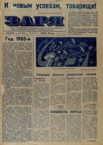 к новым успехам, ПРОЛЕТАРИИ ВСЕХ СТРАН, СОЕДИНЯЙТЕСЬ! НА МЕСЯЦ С ЛИШНИМ РАНЬШЕ СРОКА ЖИ- ОРГАН КРАСКИНСК0ГО РАЙОННОГО КОМИТЕТА КПСС И РАЙОННОГО СОВЕТА НАРОДНЫХ ДЕПУТАТОВ ЛИПЕЦКОЙ ОБЛАСТИ с ^ » ВТОРНИ К , 1 ЯНВАРЯ 1986 г ода Цена 3 коп. ВОТНОВОДЫ Р ^ О Н А ВЫПОЛНИЛИ ПЛАН ЧЕТ- ВЕРТОГО ГОДА ПЯТИЛЕТКИ ПО ЗА '">ТОВКАМ МОЛОКА, СДАВ ЕГО ГОСУДАРСТВУ 2о оо ТОНН. ПОДСЧИТАВ СВОИ ВОЗМОЖНОСТИ, о н и НА МЕТИЛИ РЕАЛИЗОВАТЬ ДОПОЛНИТЕЛЬНО 100» ТОНН ПРОДУКЦИИ, и СЛОВА МАСТЕРОВ МАШИН НОГО ДОЕНИЯ НЕ РАЗОШЛИСЬ С ДЕЛО I. ГОСУ ДАРСТВУ ПРОДАНО СВЕРХ ПЛАНА 080 ТОНН МОЛОКА._________ __ _________ _______ ■ ВЕСОМЫЙ ВКЛАД В ОБЩИЙ УСПЕХ ВНЕСЛИ РАБОТНИКИ МОЛОЧНОТОВАРНЫХ ФЕРМ КОЛ ХОЗОВ «ЗАРЯ КОММУНИЗМА». «ЗАВЕТЫ ЛЕНИ- НА», «СВЕТЛЫЙ ПУТЬ». _____ Год 1985-й Новый, 1985 год вступил в свои права. Мы встре тили его торжественно и празднично, с чувством оптимизма и уверенности в завтрашнем дне. Взвол нованный отклик в наших сердцах нашли теплые слова новогоднего поздравления, с которым Цент ральный Комитет КПСС, Президиум Верховного Совета СсСР и Совет Министров СССР обратились к советскому народу. 5'шедший в историю 1984 год оставил о себе до стойную память. Нам есть чем гордиться. Наша страна заметно продвинулась вперед на всех направ лениях хозяйственного и культурного строительства. Успешно осваиваются природные богатства Сиби ри и Дальнего Востока. Завершено сооружение Ьайцало-Амурской магистрали, досрочно сооружен и гигантский газопровод Уренгой-Помары-Ужгород, который проходит на территории нашего района. Провожая старый год, мы вспоминаем о крупных событиях, которыми порадовали наши земледель цы и животноводы, труженики промышленных предприятий и учреждений. Еще в середине декаб ря завершили выполнение годовой производствен ной программы коллективы промышленности, а молочный завод справился с планом производства и реализации продукции еще 14 ноября. Работники молочнотоварных ферм в конце но ября рапортовали о выполнении годового плана за- готЬвок молока, труженики полей вырастили высо кие урожаи сахарной свеклы и кукурузы. Почти на 10 миллионов рублей реализовали за год продукции промышленные предприятия района. Все это — результат напряженного труда людей, последовательного осуществления курса партии на более эффективное использование возможностей, на укрепление дисциплины и организованности во всех сферах нашей жизни. В новогоднем поздрав лении выражается сердечная благодарность всем, о с полной отдачей сил трудится на общее бла- приумножает материальные и духовные цен- (и Родины. '.зовем и мы имена тех, кто отличился в чет- дм году пятилетки. Это — доярки орденоносно- олхоза «Заря коммунизма» Н. А. Олейникова и Е. Щекланова, которые первыми в районе на- лли с начала года от каждой коровы более чем по 4000 килограммов молока. Это — свекловоды колхоза «Светлый путь» В. И. Двойченков и Е. Г. Евстигнеев, совхоза «Комсомольский» Н. Н. Сап рыкин и Н. А. Лысов, безнарядное звено свеклово дов колхоза «Россия» под руководством молодого коммуниста А. Т. Солдатова, которые довели уро жайность сахарной свеклы до 255—278 центнеров. Это — кукурузоводы колхоза «Заря коммунизма» А. М. Шатохии, П. Н. Ахматов, Н. В. Митяев, вы растившие на каждом гектаре 511 центнеров куку рузы. Многое сделано в минувшем году. Теперь глав ное — не потерять набранный темп, высокий наст рой на дела. Начало года — это начало пути, ко