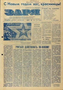 ' .* "Я фб - п С я ■ Д Ш г л г / ш / & ■ /& - - - , ‘ ы Новым годом вас, краснинцы! р ПРОЛЕТАРИИ ВСЕХ СТРАН. СОЕДИНЯЙТЕСЬ! с? ОРГАН КРАСНЯНСКОГО КОМИТЕТА КПСС ИРАЙОННОГО СОВЕТА НАРОДНЫХ ДЕПУТАТОВ ЛИПЕЦКОЙ ОБЛАСТИ Г а х т а а ы х о д н т с 15 о к т я б р я 1931 г о д а № 1 ( 703 6 ) ВОСКРЕСЕНЬЕ, 1 ЯНВАРЯ 1989 года Цена ко*. Ст арый год провож ая... 1 Тридцать первое... Праздничный вечер. 'Новогодние шумные встречи... Чем же вечер наш будет означен? Пожелаем друг другу удачи, Утра ясного, щедрого лета, А в дороге — попутного ветра, А в письме — замечательной вести, А в любви — незаученной песни. И еще: старый год провожая, Пожелаем полям урожая, Птицам — выси и детства — детям, Мир — стране и покой — планете. В. КОРОСТЕЛЕВА. «С новым годом, дорогие товарищи!»- Плакат худ- В. Викторова- Издательство «Плакат»- СОЦИАЛЬНАЯ ПАНОРАМА Справили новоселье Минувший год оставит неизгладимый след в жиз ни тружеников колхоза имени Крупской. Он вой дет в историю старинного села как год новоселий. Первой ключи от- новой квартиры получила мастер машинного доения В. А. Королева. Валентина Ар кадьевна помнит поздрав ления соседей, подруг по работе и каждого, кто разделил с ней большую радость. А иначе такое событие ' и не назовешь, цена которому во все вре мена была высокой. Каждый построенный новый дом в селе, радость для всех, а для тех, кому в нем жить—особенно. Запом нят срои новоселья ме>- ханизаторы И. А. Волков, С. В. Коробов и другие. Владельцами новых квар тир стали водитель авто машины А. С. Гомазков, токарь мехмастерской В. А. Ноев, учитель Ищеинской средней школы В. И. Ер- мичев, ветврач М. Ю. Ма гомедов. Вместе с тем улучшили свои жилищные условия доярка С. В, Гладкая, скотник И. М. Климов с супругой Еленой Тимофе евной. Новоселья ищеинцев— добрая примета. Она сви детельствует о повышении уровня жизни. Лег асфальт на дорогу Гордостью работников ДПМК является участок трассы Ищеино — Серги- евка. Сначала дорожники соединили асфальтом Ище>- ино с райцентром, а ми нувшей весной основные силы перебросили в сторо ну Красивой Мечи. Строи тельство трасс — работа нелегкая. Однако тружени ки мехколонны сумели покрыть асфальтом 8,3 ки лометра дороги. На счету работников ДПМК также 800 метров асфальтовых дорог по селу Яблоново колхоза имени Вавилова. Кроме того, они оказали услуг на 225 ты сяч рублей колхозу имени Калинина,заасфальтировав подъездные пути к мехмас терской и установкам по приготовлению травяной муки. Среди тружеников ДПМК глубоким уважением поль зуются грейдерист Ю. А. Дмитриев, экскаваторщик Н. Н. Гостев, водители КамАЗов В. Н. Клевцов, С. И. Суворов. В. МАСЛОВ. Ушел в историю 1988-й год. Он .был ознамено ван многими исторически ми событиями в жизни партии, всей страны. В июне состоялась XIX Все союзная конференция КПСС, которая стала важ нейшим политическим ру бежом перестройки, в июле Пленум Центрально го Комитета*%партии наме тил конкретные меры по претворению в жизнь ее решений. В стране идет практическое осуществле ние политической рефор мы в области государст венного строительства. Для районной партий ной организации, всех крас- нинцев прошедший год был знаменателен еще и тем, что в октябре состоялась отчетно-выборная партий ная конференция. На ней был дан глубокий анализ наших практических дел по перестройке всех сфер об щественной жизни, наме. чены конкретные планы на будущее, определены пути