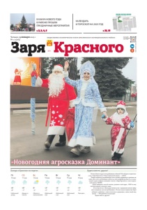 Погода в Красном на неделю Будем вместе, друзья! Хотите быть в курсе всех районных событий? Не забудьте подписать- ся на «Зарю Красного»! Наш подписной индекс — 52634. Теперь подписку на районную газету можно оформить в режиме он- лайн. Для этого необходимо войти на сайт podpiska.pochta.ru и в поис- ковой строке набрать название газеты («Заря Красного») или подпис- ной индекс ПП590. Далее выберите способ оплаты, укажите свой адрес, ФИО и под- писной период, оплатите заказ. И это еще не все. Непосредственно у нас в редакции можно офор- мить подписку «до востребования». В этом случае подписчик будет забирать «районку» самостоятельно в редакции, а цена такой под- писки — 360 рублей на полугодие. Будем вместе, друзья! КАЛЕНДАРЬ И ГОРОСКОП НА 2025 ГОД В КАНУН НОВОГО ГОДА В РАЙОНЕ ПРОШЛИ ПРАЗДНИЧНЫЕ МЕРОПРИЯТИЯ с. 13, 15 с. 2, 3, 4, 5 ОБЩЕСТВЕННО-ПОЛИТИЧЕСКАЯ ГАЗЕТА КРАСНИНСКОГО МУНИЦИПАЛЬНОГО РАЙОНА СВОБОДНАЯ ЦЕНА 16+ К расного З аря ВЫХОДИТ С 15 ОКТЯБРЯ 1931 ГОДА Четверг , 9 января 2025 г . № 1 /12263/ « Новогодняя агросказка Доминант »