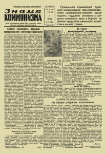 Пролетарии всех стран, соединяйтесьI Г о д и зд а н и я XXI 3 п о д ! ^ Орган Т р у б ет ч и н ск о г о р ай к ом а КПСС и р ай он н ого Совета д е п у т а т о в т р у д ящ и х с я , Л и п ец к о й обл а сти Ц ена 15 коп. Правильное применение прин ципа материальной заинтересован ности нолхознинов поможет выше поднять трудовую активность ши роких колхозных масс в борьбе за обилие продуктов сельского хозяй ства в нашей стране. Строго с о блю д а т ь принцип материальной заинт ер есованности У в ел и ч ен и е п р о и зв о д с т в а з е р н а и п р о д у к т о в ж и в о т н о в о д с т в а до у р овн я , у с т а н о в л е н н о г о я н в а р ск и м П л ен ум ом ЦК КПСС, я в л я е т с я п ер в о с т е п е н н о й з а д а ч е й р а б о т н и к о в с е л ь с к о г о х о з я й с т в а . У с п еш н о е вы п о л н е н и е э т о й з а д а ч и о п р е д е л я е т с я в п ер в ую о ч е р е д ь п р авильным и с п о л ь з о в а н и е м з е м л и , м аш и н н ой т е х н и к и , х о р ош ей о р г а н и з а ц и е й и вы сок ой д и с ц и п л и н ой т р у д а . Н е м а л о в а ж н о е з н а ч ен и е при этом и м е е т с т р о г о е с о б л ю д е н и е п р и н ц и п а м а т е р и а л ь н о й з а и н т е р е с о в а н н о с т и р а б отн и к о в в р а з в и т и и п р о и з в о д с т в а , в у в е л и ч ен и и ег о д о х о д н о с т и — о д н о г о и з к ор ен ны х при н ц ип ов с о ц и а л и с т и ч е с к о г о х о з я й с т в о в а н и я . Принцип м а т е р и а л ь н о й з а и н т е р е с о в а н н о с т и в к о л х о з а х о с у щ е с т в л я е т с я при пом ощ и т р у д о д н я , к оторы й с л у ж и т о с н ов н ой м ер ой т р у д а и м ер ой р а с п р е д е л е н и я а р т е л ь ны х д о х о д о в . Чем б ол ьш е вы п о л н я е т ся к о л х о зн и к ом и л и к о л х о з н и ц е й р аботы , т е м б о л ьш е им н а ч и с л я е т с я т р у д о д н е й , тем б ол ьш е они п о л у ч а т р а с п р е д е л я е м о г о д о х о д а в к о л х о з е . В п о с т а н о в л е н и я х п ар ти и и п р а в и т е л ь с т в а по се л ь с к о м у х о з я й с т в у у к а з а н ы меры п о ощ р ен и я т р у д о в о й а к т и в н о с т и к о л х о зн и к о в . Совет Министров СССР о б я з а л з а п е р евы п о л н е н и е д о в е д е н н ы х з а д а н и й по п о л у ч ен ию п р и п л о д а и про д у к т и в н о с т и о бщ е с т в е н н о г о с к о т а н а ч и сл я т ь р а б о т н и к а м ж и в о т н о в о д с т в а д о п о л н и т е л ь н ую о п л а т у н а т у р о й и д е н ь г а м и . С ен т я бр ь ск и й П л ен ум ЦК КПСС, в ч а с т н о с т и , ре- л а ты и а в а н си р о в а н и я к о л х о з ников у с т р а н я е т о б е з л и ч и в а н и е д о х о д о в от э т о й в а ж н е й ш ей о т р а с л и х о з я й с т в а , п о выш ает т р у д о в ую а к т и в н о с т ь к о л х о зн и к о в в у в е л и ч ен и и п р о и зв о д с т в а м о л о к а , м я с а , ш ер ст и , я и ц и д р у г и х п р о д у к тов. Н есм о т р я н а и склю чи те л ь н ую в а ж н о с т ь с о б л ю д е н и я п ринцип а м а т е р и а л ь н о й з а и н т е р е с о в а н н о с т и , о н во м н о г и х к о л х о з а х н аш е г о р а й о н а г р у бо н а р уш а е т с я . И з в е с т н о , что к о л х о з «К р асны й л у ч » и д е т первым в р а й о н е п о н а д о я м м о л о к а . В этом н е с о м н е н н а я з а с л у г а р а б о т н и к о в м о л о ч н о то в а р н о й ф ермы . О днако п р а в л е н и е а р т е л и и е г о п р е д с е д а т е л ь т . Д ег т я р е в п оч ем у -то м е д л я т с вы д а ч е й д е н е ж н ы х а в а н с о в и д о п о л н и т е л ь н о й о п л а ты д о я р к а м и п а с т у х а м . И з к о л х о зо в п о с т у п а ю т с п р а в ед л и вы е ж а л о бы н а то , что п р а в л е н и я п о д в ся к им и п р е д л о г а м и з а д е р ж и в а ю т в ы д а ч у д е н е ж н ы х а в а н с о в з а о б р а б о т к у с а х а р н о й св ек лы . В р а й о н е н а ч
