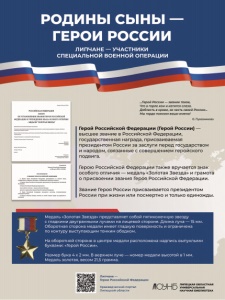 РОДИНЫ сыны — ГЕРОИ РОССИИ ЛИПЧАНЕ — УЧАСТНИКИ СПЕЦИАЛЬНОЙ ВОЕННОЙ ОПЕРАЦИИ »шрг« 19921001ХИЯ-1 РОССИЙСКАЯ ФЕДЕРАЦИЯ ЗАКОН ОБ УСТАНОВЛЕНИИ ЗВАНИЯ ГЕРОЯ РОССИЙСКОЙ ФЕДЕРАЦИИ И УЧРЕЖДЕНИИ ЗНАКА ОСОБОГО ОТЛИЧИЯ - МЕДАЛИ "ЗОЛОТАЯ ЗВЕЗДА" Б<9мммЯСомтЯо<асЯавоАФсас9*ошпо{т«мм1гт: УстзясюпьюммсПровРо«мЯа»ЯФекрдом ли приаосяюи жлугяперсагосушрстюяитревом.тмижмс< Ввсехособогоотжч)мгршш.»хтооошхимоаГ*р<*РосоАса*йскряри.предан»*шособогоот»™**•пса» Утроят»ПолоовгкжогынкяГероеРосоФск*Фтор*«го. Утроят» огосаиис медок"ЗаютмЗвол*'. Моасм,ДомСоветовРосам. 20тр» 1*2как КИЯ-1 т срааяю ЗшиомРосоЛлой«ежрцго от20марта1992г.КИЯ-1 Утверждено ЗакономРоссийскойФедерации от20марта1992сК*2553-1 ПОЛОЖЕНИЕ ОЗВАНИИ ГЕРОЯ РОССИЙСКОЙФЕДЕРАЦИИ 1. Звание Героя Российской Федерации присваивается за заслуги перед государствоминародовсвязанныессовершениемгеройскогоподвига. 2.ЗваниеГерояРоссийскойФедерацииприсваиваетсяПрезидентомРоссийской Федерации 3.ГероюРоссийскойФедерациивручаются: знакособогоотличия—медаль«ЗолотаяЗвезда»; грамотаоприсвоениизванияГерояРоссийскойФедерации. 4. Герои Российской Федерации пользуются льготам^ установленными законодательством. 5. Медаль«Золотая Звезда» носится на левой стороне груди надорденами и ...Герой России —звание такое, Что в горле ком и катится слеза. Доблесть в крови, за честь своей России... Мы гордо помним ваши имена! О. Пуховникова Герой Российской Федерации (Герой России) — высшее звание в Российской Федерации, государственная награда, присваиваемая президентом России за заслуги перед государством и народом, связанные с совершением геройского подвига. Герою Российской Федерации также вручается знак особого отличия — медаль «Золотая Звезда» и грамота о присвоении звания Героя Российской Федерации. Звание Героя России присваивается президентом России при жизни или посмертно и только единожды. Медаль «Золотая Звезда» представляет собой пятиконечную звезду с гладкими двугранными лучами на лицевой стороне. Длина луча — 15 мм. Оборотная сторона медали имеет гладкую поверхность и ограничена по контуру выступающим тонким ободком. На оборотной стороне в центре медали расположена надпись выпуклыми буквами: «Герой России». Размер букв 4 x 2 мм. В верхнем луче — номер медали высотой в 1 мм. Медаль золотая, весом 21,5 грамма. Липчане — Герои Российской Федерации Краеведческий портал Липецкой области ЛИПЕЦКАЯ ОБЛАСТНАЯ УНИВЕРСАЛЬНАЯ НАУЧНАЯ БИБЛИОТЕКА